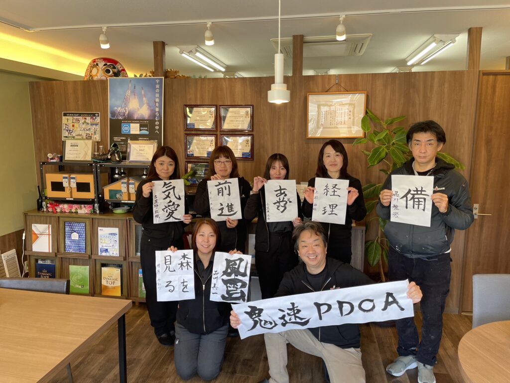 それから全員で書初め大会です。2026年の目標・テーマを書き出して一年間見えるところに掲示します。