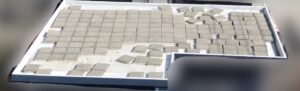 サーキュレーションブロックは、セメント板の裏に断熱材がくっついていて、屋上防水の上に敷くことで外断熱を実現します。大手ハウスメーカーさんの住宅仕様です。きれいに並べてあるでしょう?