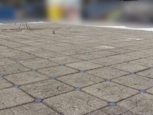こちらの画像は昨日お伺いしたOB様の5年目のアフター点検でドローンで撮影した画像です。屋上に正方形のセメント板が敷き並べてあるのはサーキュレーションブロックです。